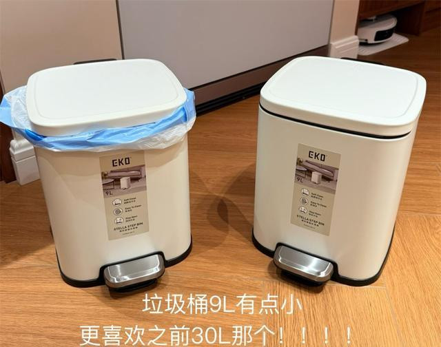 垃圾桶别贪大。9L刚好一天一倒,不招小飞虫。山姆这款白色+金属色,脚踏开盖,手里端着锅也能“duang”一脚踹开,油手不碰盖,洁癖星东谈主狂喜。垃圾袋别用超市赠品,买雄厚抽绳款,倒垃圾像拔萝卜,袋口一拉就走东谈主,不脏手。