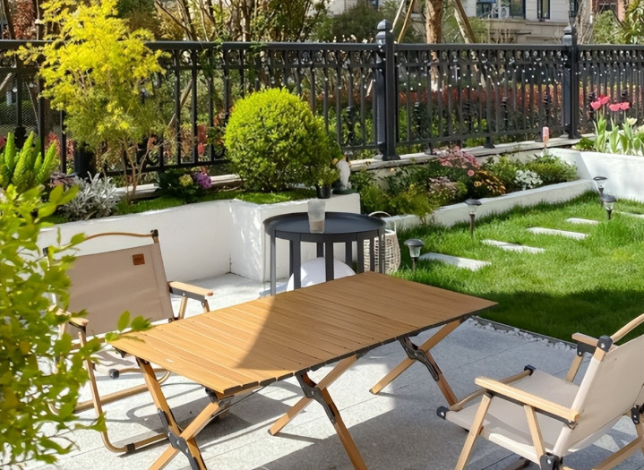 我见过一套带小花坛的房子,主东说念主在花坛里种了些花卉,还摆了小桌椅。